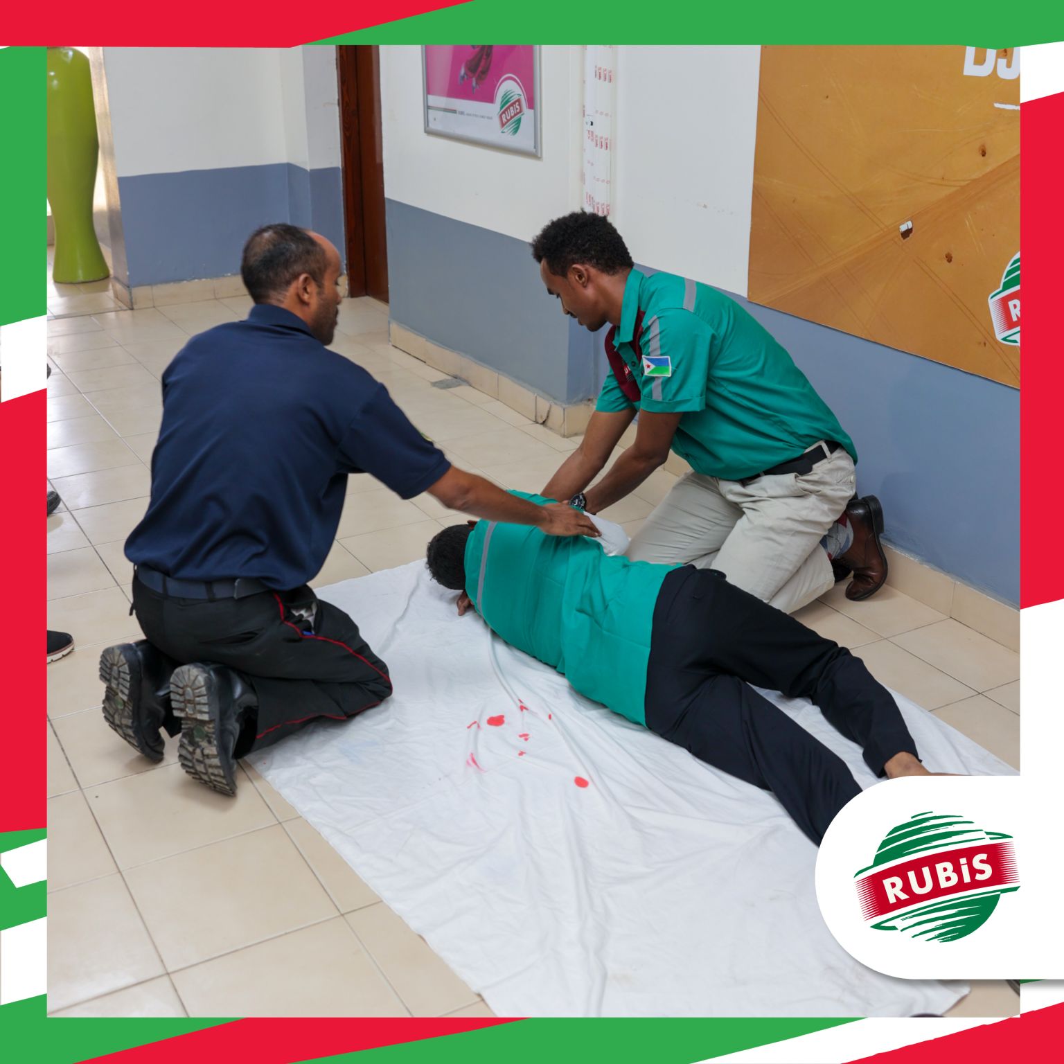 RUBIS ENERGIE DJIBOUTI a formé son personnel aux premiers secours (PCS1) du 21 au 24 janvier avec la Protection Civile. Cette formation visait à apprendre à : - Protéger les clients, les victimes et les témoins ; - Évaluer et secourir la victime ; - Contacter les secours adaptés ; - Prévenir les risques au travail et respecter les procédures de prévention. Notre personnel a aussi révisé les gestes à adopter face à diverses situations : malaise, alerte, plaies, brûlures, étouffement, saignement, inconscience, arrêt respiratoire. Cette formation montre notre engagement pour la sécurité au travail.