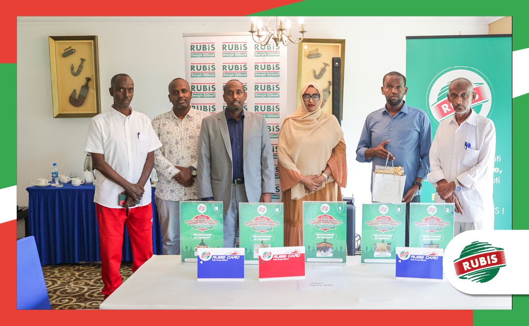 Rubis Énergie Djibouti (RED) a organisé le 22 avril la cérémonie de remise des lots aux gagnants du jeu concours pour le mois de Ramadan. Celui-ci s’est déroulé du 11 mars au 11 avril 2024 dans les stations-services de Djibouti-ville. Durant cette période, 5 lots ont été mis en jeu aux clients ayant effectué un plein d’au moins 7.000 FDJ. Cette année Rubis Energie Djibouti a souhaité accompagner sa clientèle en proposant en premier lot le Pèlerinage au Hajj. Ce voyage dans les lieux saints marque un moment important dans la vie spirituelle et constitue généralement le rêve d’une vie. Cette année vous avez encore été très nombreux avec 11 400 participants, et nous vous en remercions de votre fidélité. À l’issue du tirage au sort en date du 14 avril dernier et supervisé par M. Abdoulmalik, huissier de justice assermenté, les gagnants sont : Lot n°1 : Pèlerinage Hajj à la Mecque à Madame Ladane Abdourazak, Lot n°2 : un week-end en amoureux à Gadileh Resort, à Monsieur Abdourahman Robleh, Lot n°3 : un coffret de 3 parfum Oud, à Monsieur Moustapha Omar, Lot n°4 : un diner en couple au Kempinski à Monsieur Youssouf Abdallah, Lot n°5 : un coffret religieux, à Monsieur Hassan Osman, Après avoir accueilli les gagnants, Monsieur Mahamoud ABDI Directeur Général a tenu à les remercier pour leur participation à ce jeu concours ainsi qu’aux gérants des stations-services pour les efforts déployés. La cérémonie s’est ensuite poursuivie autour d’un petit-déjeuner convivial avec les gérants, les heureux gagnants et l’équipe RED. Enfin félicitations aux gagnants qui ont récupéré leurs lots et particulièrement à la gagnante du premier lot, Madame Ladane Abdourazak qui a planifié son pèlerinage au Hajj en couple avec son cher mari.